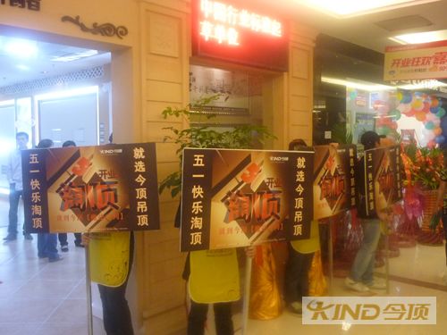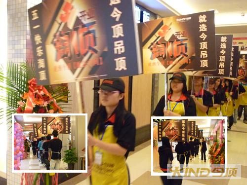 在開業(yè)當天,四面八方的泉州業(yè)主齊聚喜盈門建材家居廣場,與此同時今頂集成吊頂泉州品牌專營店利用今頂“51淘頂就到今頂魔法空間”的奇特宣傳思路將印有活動主題的手舉牌隊伍傳遞到了建材廣場的每一個角落。專營店門前的迎賓隊伍也是將對吊頂產(chǎn)品有需求的業(yè)主熱情迎接到今頂專營店內(nèi)。
