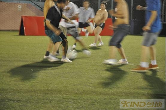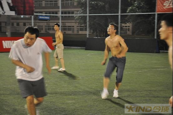 晚上20:00整,所有的參賽人員興致勃勃的來到球場(chǎng)。開始了熱身鍛煉,全然忘卻了建博會(huì)幾天下來的疲憊,掩蓋不住的是滿臉的興奮和對(duì)球賽的期待。20:30,球隊(duì)開始了分組,為了方便隊(duì)友之間相互識(shí)別身份,其中一隊(duì)脫去上衣,并命名為“裸奔隊(duì)”,他們的口號(hào)是:“裸奔裸奔,勇往直奔”。另一隊(duì)則是“錦衣衛(wèi)”隊(duì),他們勢(shì)在打造銅墻鐵壁般的防守體系。