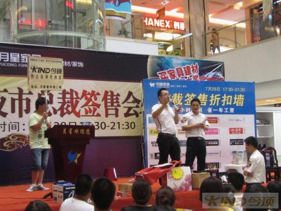 七月泰州,艷陽高照,廣大市民不畏懼烈日高溫,不遠(yuǎn)千里而來,參與本次促銷活動,活動當(dāng)日,泰州今頂為了讓客戶擁有實實在在的優(yōu)惠,為了更好的籌辦這次活動。特推出備受全國消費者熱烈追捧與一致好評的2012新品勁爆價銷售,真情回饋新老客戶一直以來對今頂?shù)蹴斊放频闹С?,人山人海的活動現(xiàn)場氣氛異常火爆,在一陣瘋狂簽單熱潮后,今頂集成吊頂最終成功獲得本次活動簽單冠軍。