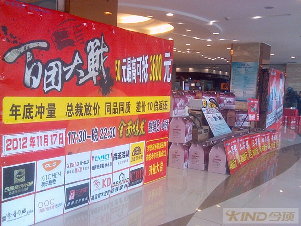 11月17日,由今頂集成吊頂?shù)?2家國內(nèi)一線家居建材品牌發(fā)起的“百團(tuán)大戰(zhàn)”聯(lián)盟活動(dòng)在銀川紅星美凱龍火熱開展。本次活動(dòng)讓很多消費(fèi)者滿載而歸,得到了實(shí)實(shí)在在的實(shí)惠。而此次活動(dòng)的簽單大贏家:銀川今頂也是對(duì)活動(dòng)結(jié)果相當(dāng)滿意,對(duì)市場(chǎng)充滿信心。