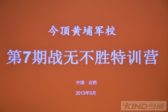 2013年3月18日“今頂黃埔軍校第七期戰(zhàn)無不勝特訓營”在安徽合肥召開。本次培訓會匯集了今頂安徽戰(zhàn)區(qū)經(jīng)銷商、店長、導購、今頂安徽戰(zhàn)區(qū)團隊、今頂虎豹組等成員,培訓工作由今頂公司品牌運營部擔任。這次針對特訓營的培訓課程安排了《今頂戰(zhàn)無不勝贏利模式四部曲》、《勝者為王—今頂終端導購博弈指引》、《戰(zhàn)無不勝—今頂產(chǎn)品策略及系統(tǒng)性賣點話術指引》等內(nèi)容。
