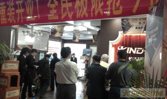 今頂復(fù)古吊頂在2013的“五一”假期,不僅上演了今頂復(fù)古吊頂全國火爆銷售的場面,更是有多家新裝、重裝門店盛大開業(yè),這也為今頂復(fù)古吊頂?shù)奈逡辉鎏砹肆硪荒聋惿省T?013年4月30日,及5月1日各地新裝、重裝開業(yè)的今頂以各種不同形式配合著門店開業(yè)開展著終端促銷活動。江蘇常州,今頂復(fù)古吊頂盛裝開業(yè)。
