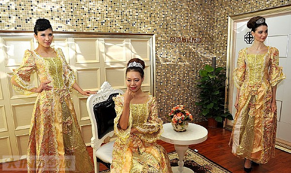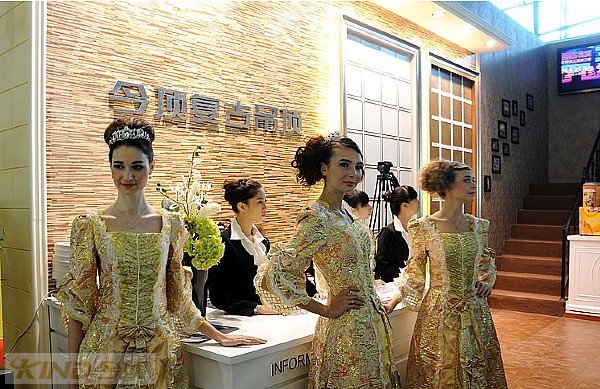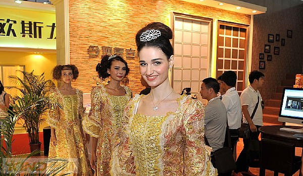 在廣博會現(xiàn)場,8位名模身著復古服飾盛裝出席。他們或在樣板間依產(chǎn)品而靠,或在凱旋門前威武而立,并不時集體進行產(chǎn)品展示秀,他們與今頂復古集成吊頂?shù)恼桂^、產(chǎn)品融為一體,亦動亦靜的詮釋著今頂復古集成吊頂?shù)膹凸棚L尚。驚艷的氣質(zhì)、華麗的裝束、優(yōu)雅的動作,吸引了大批參觀人士駐足觀看。為今頂復古集成吊頂本次展會的成功舉行起到了一定的推動作用!