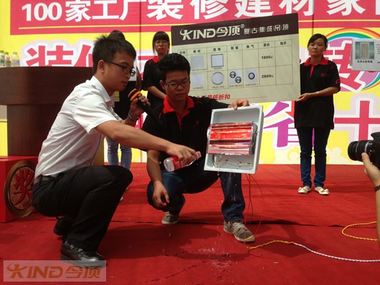 這次家博會(huì)吸引了大量一線品牌的參加,包括皮阿諾、金意陶、馬可波羅、德爾、索菲亞、今頂?shù)鹊?,眾多一線品牌都積極參與到了本屆家博會(huì)當(dāng)中。在鄂州業(yè)主的期待中,本屆家博會(huì)的高潮“品牌展示”的時(shí)間到了,今頂代表攜今頂產(chǎn)品與廣大鄂州業(yè)主見面。首先,作為吊頂企業(yè),今頂工作人員向大家展示了今頂?shù)牡蹴斴o件、更將今頂換氣——風(fēng)霸的超級(jí)功能向大家做了展示,接下來取暖模塊淋水水實(shí)驗(yàn)等都使廣大鄂州業(yè)主對(duì)今頂復(fù)古集成吊頂?shù)漠a(chǎn)品充滿了信心。演示完畢,很多業(yè)主直接到今頂展位搶購今頂復(fù)古集成吊頂?shù)漠a(chǎn)品,這也為鄂州今頂呈上了大量的產(chǎn)品訂單,作為集成吊頂十大品牌今頂勢(shì)必更加一如既往的服務(wù)鄂州業(yè)主。
