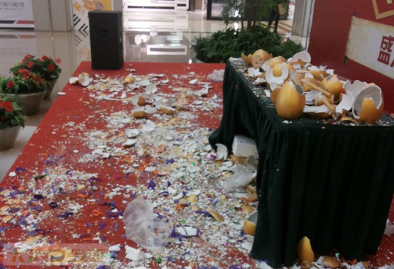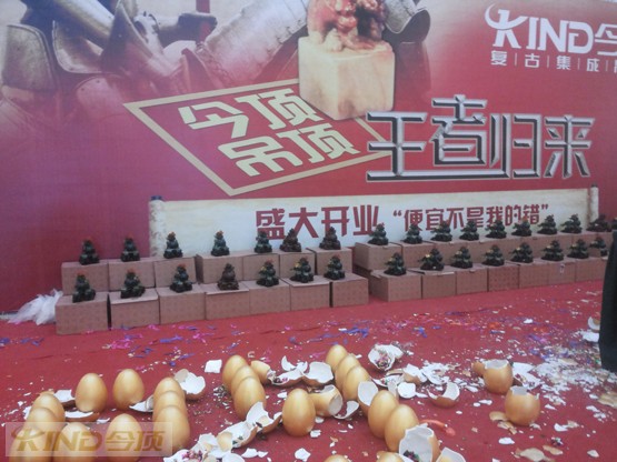 鎮(zhèn)江今頂在開業(yè)當(dāng)天為將要到場簽單業(yè)主準(zhǔn)備了充足的禮物及各種獎勵。在今頂盛裝開業(yè)的形象墻前,今頂為業(yè)主準(zhǔn)備了上百的待砸金蛋,這些待砸金蛋在“今頂·王者歸來”的形象墻前顯得甚為耀眼。經(jīng)過鎮(zhèn)江業(yè)主的“不懈努力”百余個為業(yè)主簽單準(zhǔn)備的金蛋被砸的“一片狼藉”,這一場面足以說明鎮(zhèn)江業(yè)主對今頂復(fù)古吊頂以及這個品牌的熱愛!