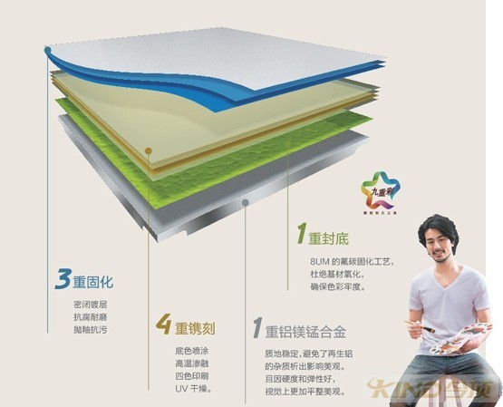一重封底:8UM的氟碳固化工藝,杜絕基材氧化,確保色彩牢度。