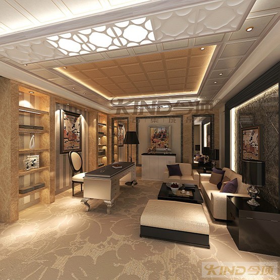具有復(fù)古韻味的歐式書房吊頂設(shè)計(jì)在空間錯(cuò)層結(jié)構(gòu)的營造上門下足了功夫。歐式典雅紋理的“再創(chuàng)輝煌”搭配大面積典雅金色的“白金漢宮”系列產(chǎn)品,將歐式奢華典雅的氣質(zhì)進(jìn)行完美演繹。四周搭配淺白色系的板材,在追求古典情懷的過程中帶著時(shí)尚的元素,為歐式書房設(shè)計(jì)增添不一樣的體驗(yàn),體現(xiàn)著歐式書房空間的浪漫典雅的復(fù)古情懷。