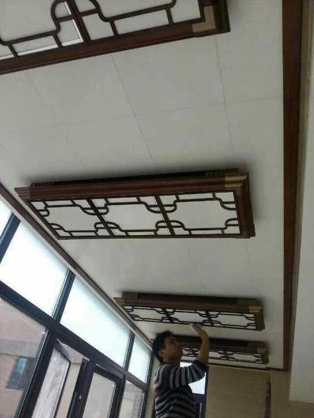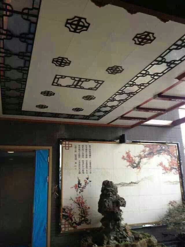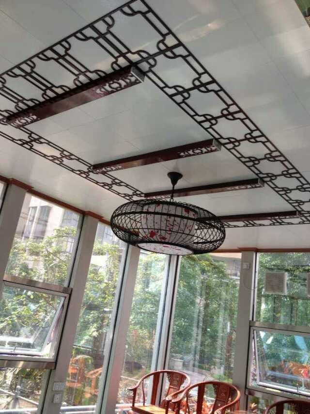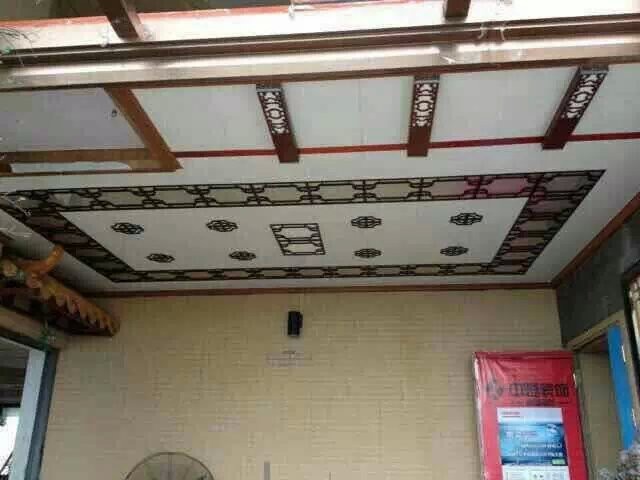 景觀裝修完成后,張先生看來看去,總覺得還缺少什么。不經(jīng)意抬頭間,發(fā)現(xiàn)頂部一片空白,與整個(gè)空間環(huán)境格格不入。的確,對于仰望與思考的人來說,怎能忍受抬頭仰望時(shí)頂部的一片空白呢?一開始,設(shè)計(jì)公司建議張先生選用“桑拿板”和“石膏板”,但是石膏板單一的風(fēng)格,與整個(gè)入戶花園空間格格不入,匹配起來毫無美感可言。抱著試一試的想法,張先生撇開裝修公司,自己來到建材商場尋找中式風(fēng)格的吊頂。