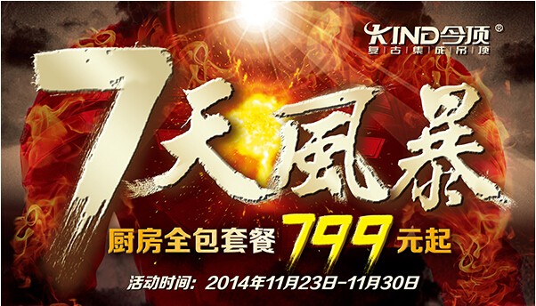 秋去冬至,狂歡不止。今頂復(fù)古集成吊頂將于2014年11月23日在全國(guó)范圍內(nèi)開(kāi)啟7天風(fēng)暴狂歡周:
