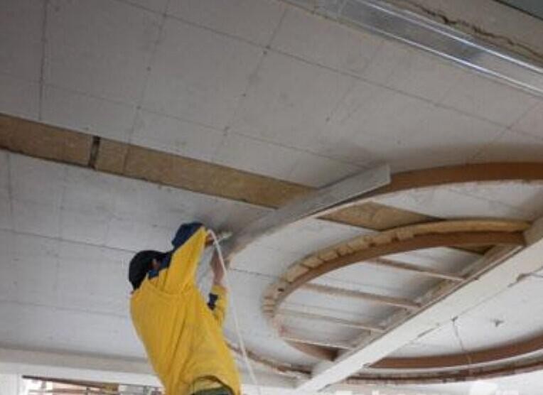石膏板本身具有防火性,但是用石膏板做的吊頂沒有防火性,大量的木框造型存在安全隱患。石膏板的支撐主要是靠兩層紙,把紙燒掉以后板子就散了,容易造成頂部坍塌的危險。