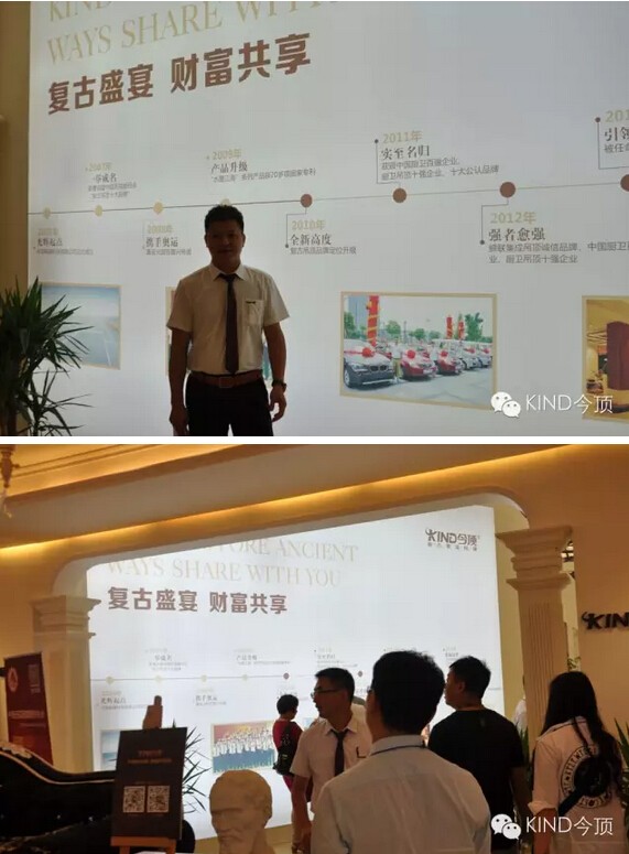 以“復(fù)古盛宴,財富共享”為主題的今頂歷程墻,向參觀者展示著今頂作為復(fù)古吊頂開創(chuàng)者的光輝歷程。