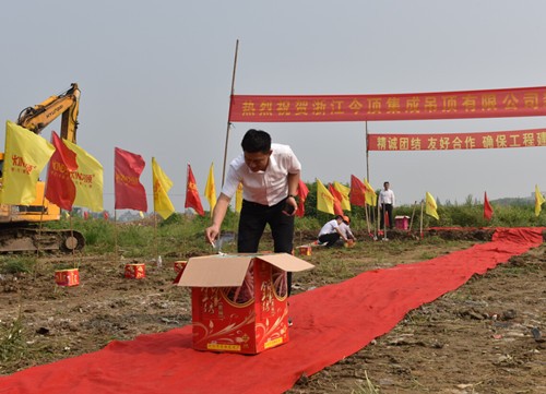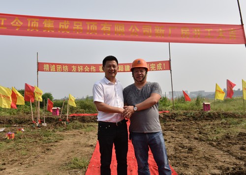 今頂集成吊頂有限公司總經(jīng)理周建成,副總經(jīng)理錢(qián)宏亮、華偉,及公司高層共同出席開(kāi)工儀式。