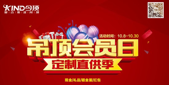 十月裝修旺季之時(shí),今頂復(fù)古集成吊頂全國(guó)1000多家專賣店將同期開展,10月“吊頂會(huì)員日”定制直供季促銷活動(dòng),已如火如荼展開,與您共享今頂?shù)蹴旝吟咽⒀纾?/span>