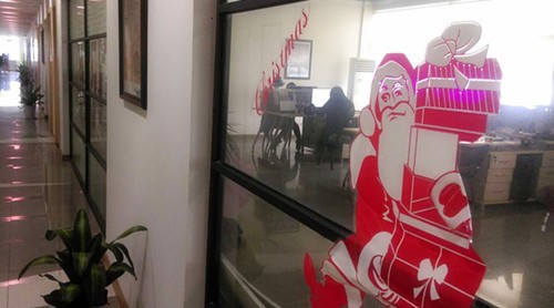 今頂公司內掛滿彩燈的圣誕樹,絢爛多彩,讓小伙伴們置身于濃濃的圣誕氛圍中!每個部門入口掛著整齊的圣誕鈴鐺,玻璃上貼著圣誕窗花,用英文字寫就的“圣誕快樂!”辦公室內擺放著各種各樣五彩的小圣誕樹,每每這時,我們總會從圣誕帶給大家的笑容中贊賞著西方人豐富的想象,是他們用美妙的故事編織了圣誕快樂的時光。