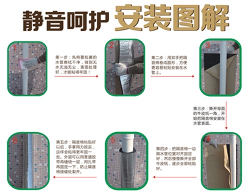 4、 把隔音棉一邊跟水管位置對(duì)齊固定好,然后慢慢撕開(kāi)全部牛皮紙,逐步全部粘貼好。