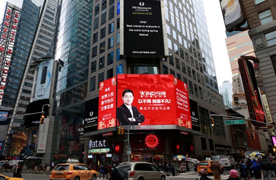 美國紐約時代廣場地處全球最受矚目的商業(yè)核心地段,又稱“世界十字路口”,這里每天有150萬人進出時代廣場,每年4.5億人次的人流量,歷來被視為“吸引全球目光”的最佳窗口,這里幾乎成為企業(yè)進行全球品牌戰(zhàn)略的必爭之地。能夠在時代廣場的大屏幕上得到展示,體現(xiàn)了今頂集成吊頂品牌的實力和視野,同時這也是今頂作為中國民族品牌向全世界輻射影響力的新起點。