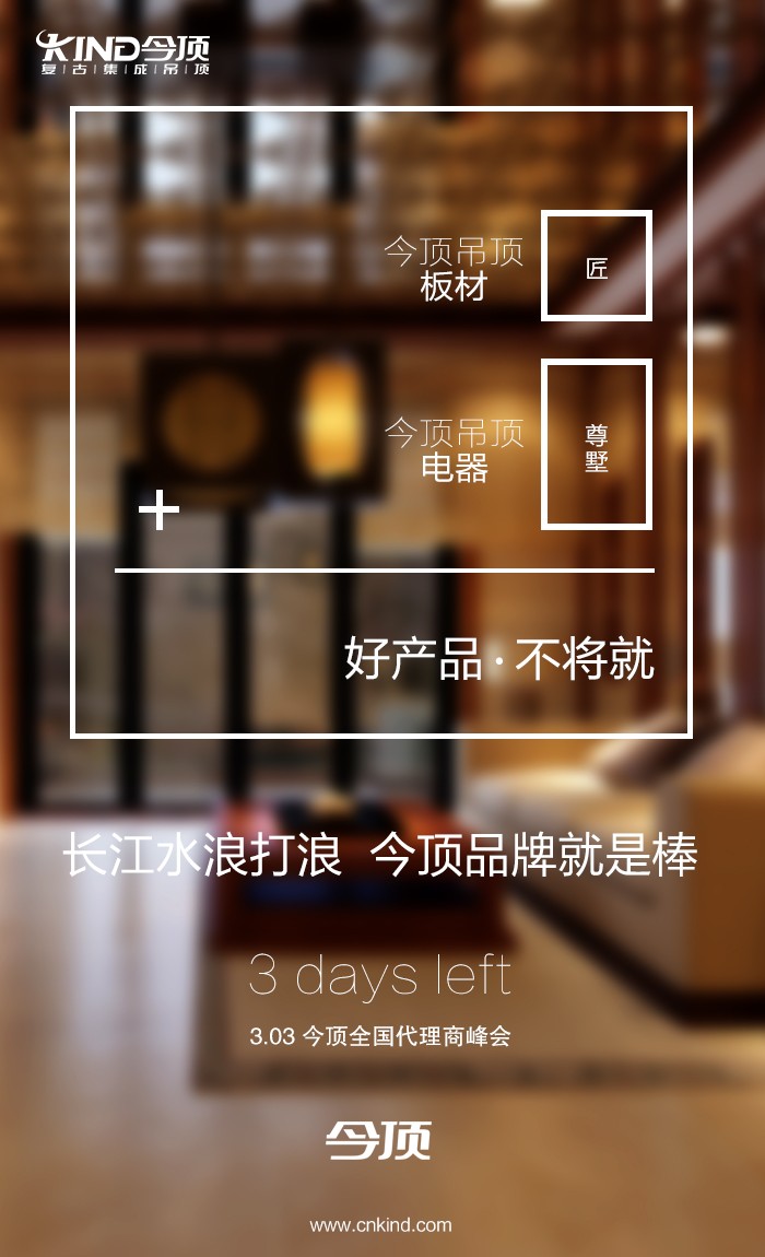 此次今頂集成吊頂代理商年度峰會(huì),盛大的頒獎(jiǎng)典禮、空前的媒體陣容、高品質(zhì)今頂集成吊頂新產(chǎn)品、今頂最新戰(zhàn)略規(guī)劃……如此浩大,值得期待!如此說來今頂集成吊頂2016年代理商峰會(huì)備受矚目的原因就不言而喻了。