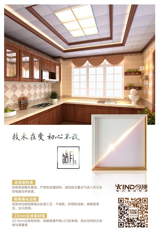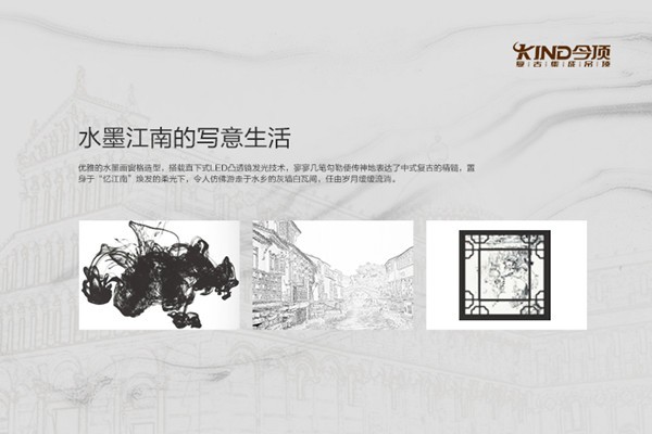 本次今頂集成吊頂2016年春季新品“328照明系列”隆重登場,旗下憶江南、歐韻、皓月Ⅱ三大系列全面上市。三種不同風(fēng)格,通過勾勒空間,渲染色彩,塑造形態(tài)等方式,為展示設(shè)計渲染、烘托出神奇的空間效果。通過不同的藝術(shù)表現(xiàn)方式,將得到符合展示形式內(nèi)容和空間氣質(zhì)的獨特韻味,使家庭空間氛圍更加形神兼?zhèn)?、入木三分,達(dá)到展示視覺藝術(shù)的最高境界,開啟藝術(shù)照明新時代!同時,延續(xù)之前LED照明系列細(xì)節(jié)的設(shè)計優(yōu)勢,讓每一粒光都展現(xiàn)出無與倫比的美,讓家的空間彌漫著經(jīng)典與浪漫的色彩。