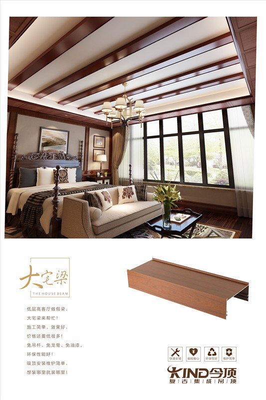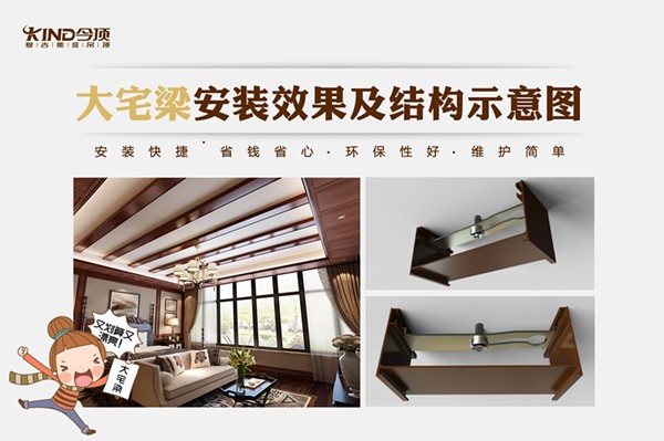 我們如何能夠達到做“假梁”的設計效果,讓人們省心、省錢又環(huán)保呢?今頂集成吊頂2016年春季新品設計元素:大宅梁,讓我們花更少的錢,達到更好的效果!今頂大宅梁施工簡單,完工效果好,投入費用低,儼然成為假梁的克星。