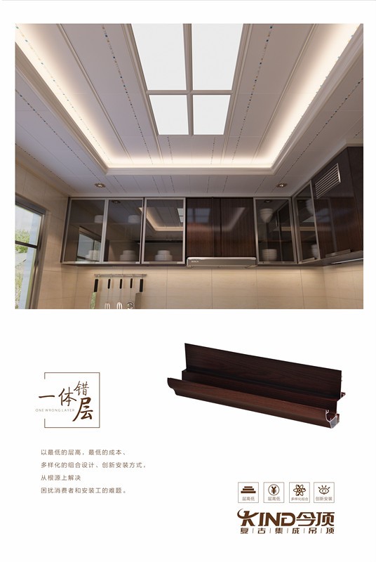 以最低的層高,最低的成本、多樣化的組合設(shè)計(jì)、創(chuàng)新安裝方式,從根源上解決困擾消費(fèi)者和安裝工的難題。今頂“微錯(cuò)層”、“一體錯(cuò)層”以成本低,空間低,安裝快的優(yōu)點(diǎn),迅速向集成吊頂行業(yè)全屋吊頂蔓延。