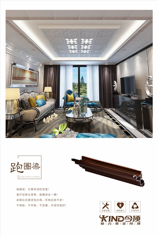 今頂大宅梁強烈的視覺沖擊,奢華、大氣,完美融入各種家裝風格。相對集成吊頂的安裝,今頂大宅梁免吊桿、免龍骨使得安裝變得更加便捷。相對于假梁,今頂大宅梁免油漆,環(huán)保性能好,讓室內裝修環(huán)境更綠色。吸頂安裝維護簡單,想裝哪里就裝哪里,滿足用戶個性搭配的需要!