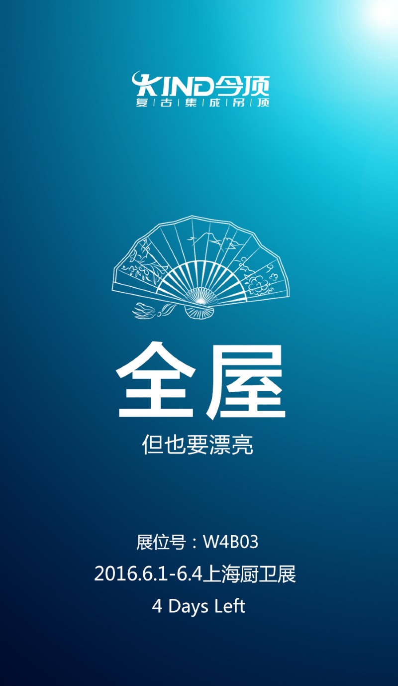 2016年第21屆中國(guó)(上海)國(guó)際廚房、衛(wèi)浴設(shè)施展覽會(huì),今頂集成吊頂將以最美的頂上風(fēng)景呈現(xiàn)給廣大朋友們。讓我們跟隨小編先堵為快!