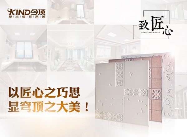 今頂集成吊頂,10年來的匠心積累,純正的復古血統(tǒng),卓越的工藝質(zhì)感,低調(diào)中隱現(xiàn)璀璨內(nèi)蘊,鐫刻最華美的復古樂章。今頂“匠人”雕琢的藝術(shù)品,完美演繹出立體紋飾、令產(chǎn)品呈現(xiàn)出如手工打磨般的質(zhì)感以及歷經(jīng)歲月洗練后的滄桑粗獷的斑駁效果。奇妙瑰麗,令人驚嘆!今頂全新產(chǎn)品完美詮釋“工匠精神”,是今頂人的瑰寶!