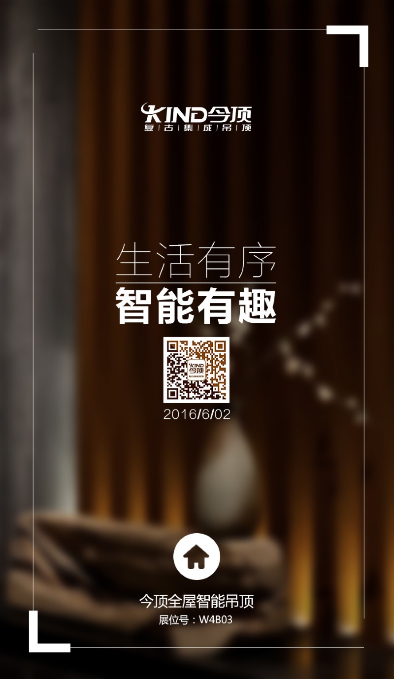 2016年6月1日-6月4日, 今頂隆重亮相“第21屆中國(guó)(上海)國(guó)際廚房、衛(wèi)浴設(shè)施展覽會(huì)” !今頂全屋智能吊頂,贏取下個(gè)十年,攜2016年最新板材、設(shè)計(jì)元素、智能產(chǎn)品等強(qiáng)勢(shì)登陸。