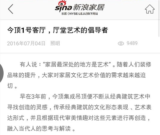 中國吊頂雜志:今頂完美的表現(xiàn)了我們的生活情懷,對生活品質(zhì)的追求
