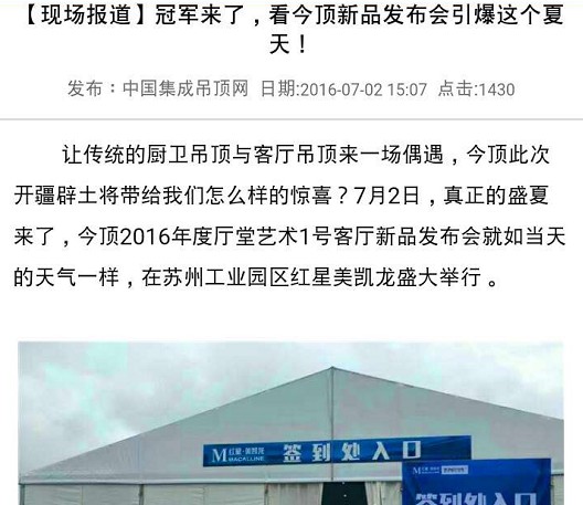 中國集成吊頂網(wǎng):冠軍來了,今頂新品發(fā)布會確實足夠引爆這個夏天