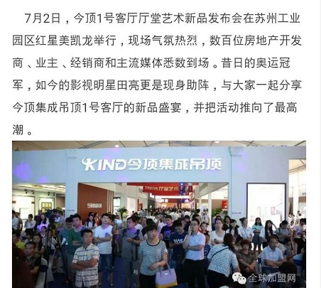 全球加盟網(wǎng):田亮助陣,今頂1號客廳新品發(fā)布會場面火爆