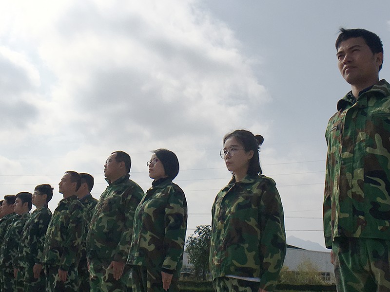 2月7日,早晨8點(diǎn)整,我們整裝待發(fā)前往臨安千年古鎮(zhèn)——龍崗鎮(zhèn),一路上,大家歡聲笑語(yǔ),其樂(lè)融融,喜歡唱歌的同事也給大家奉獻(xiàn)了精彩的歌曲。在一片歡歌笑語(yǔ)聲中,大家抵達(dá)此行的第一站——龍都大酒店。稍作休息,大家穿上整齊的迷彩作訓(xùn)服,個(gè)個(gè)精神抖擻,激情澎湃!此行的第一個(gè)拓展培訓(xùn)“破冰行動(dòng)”也正式拉開(kāi)帷幕。