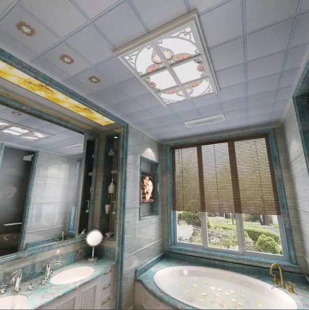 帶有粉色咖色凌亂紋飾的藍色大理石與頂部的LED的色彩遙相呼應(yīng),貴氣不俗氣,還帶有那么一點小清新的淡雅,在這樣的浴室泡澡,心曠神怡。