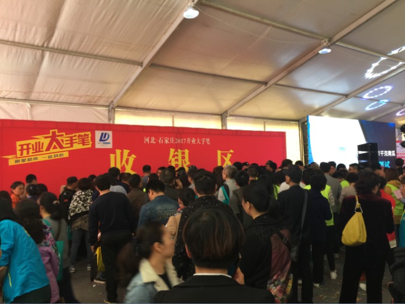 還未到活動時間,現(xiàn)場就陸陸續(xù)續(xù)的有人開始入場,時間一到更是蜂擁而至。石家莊的4月15日陽光明媚,二十七八度的天氣溫暖慵懶正是舒適?;顒蝇F(xiàn)場與之形成強烈的對比,人聲嘈雜好似枝頭蟬鳴,氣氛火爆堪比八月的夏季,溫度直線飆升。