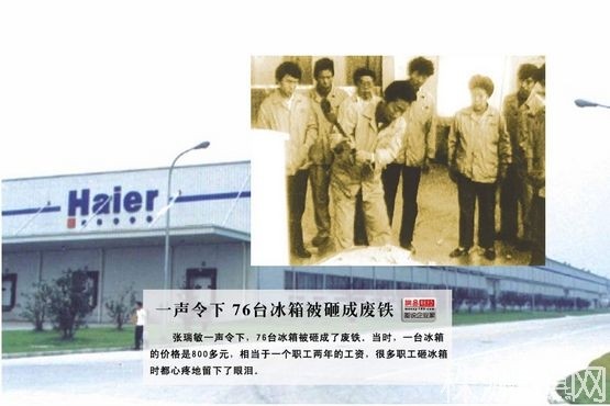 早在1985年,“海爾砸冰箱事件”轟動(dòng)一時(shí),震動(dòng)社會(huì)。當(dāng)時(shí)有用戶(hù)反映冰箱存在質(zhì)量問(wèn)題,海爾公司在給用戶(hù)換貨后,對(duì)全廠冰箱進(jìn)行了檢查,發(fā)現(xiàn)庫(kù)存的76臺(tái)冰箱雖然不影響冰箱的制冷功能,但外觀有劃痕,時(shí)任廠長(zhǎng)的張瑞敏決定將這些冰箱當(dāng)眾砸毀,并提出“有缺陷的產(chǎn)品就是不合格產(chǎn)品”的觀點(diǎn)。