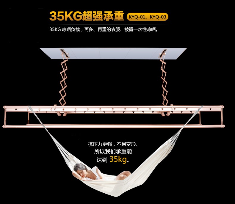 【35kg晾曬負(fù)載】:35KG晾曬負(fù)載,再多、再重的衣服、被褥一次性晾曬。