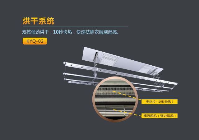 今頂智能晾衣架(KYQ-02)采用雙核風(fēng)暖,可以10秒快熱,