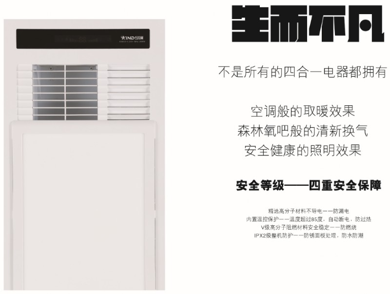 和傳統(tǒng)多功能浴霸、浴室暖空調(diào)不一樣,暖尊6獨(dú)特的雙電機(jī)設(shè)計,可支持取暖換氣同步運(yùn)行,使沐浴環(huán)境暖而不悶。而眼下正值炎炎夏日,可換而設(shè)置吹風(fēng)換氣,讓自然涼風(fēng)和換氣同步運(yùn)行,令浴室涼爽舒適,從此再無悶熱煩惱!