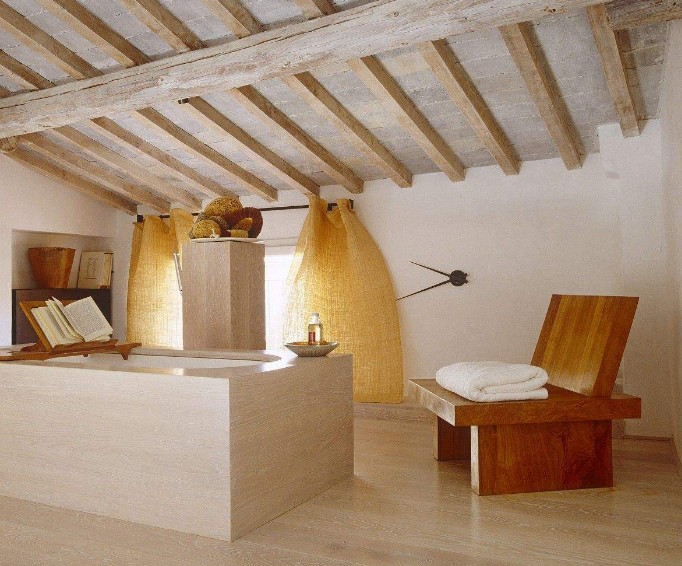 放飛自我型:自己有院子有圍墻的前提下,修這么一個半開放式的浴室,洗澡的時候跟直接幕天席地也差不離了!貼近自然,放飛自己,這一刻,我不是凡人,我是大自然的精靈!