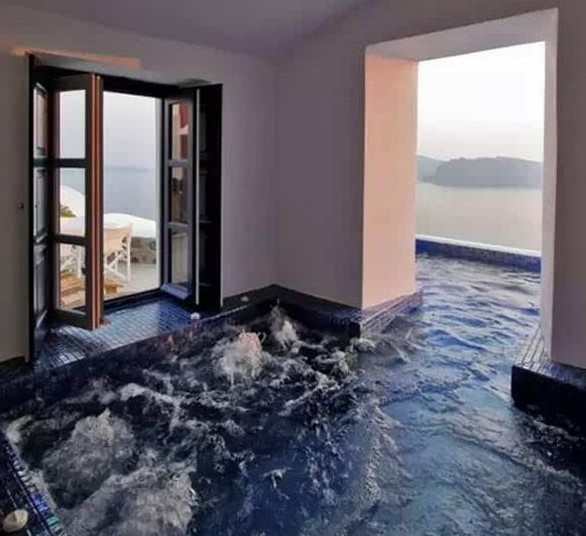 浪到飛起型:背靠樓頂陽臺,面朝大江大海!洗澡游泳兩不誤,真·浪到飛起!