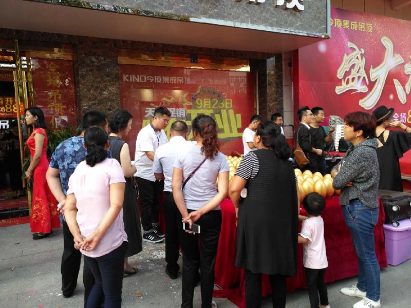 前四季全國大促的順利舉行,讓消費者們實實在在享到了優(yōu)惠,感受到了何為高品質(zhì)的集成吊頂,為了響應(yīng)廣大消費者們的強烈需求,今頂集成吊頂繼續(xù)舉辦了此次“惠動923”今頂家年華全國大促第五季,除了主會場武漢外,全國各地超過1000家的今頂集成吊頂專賣店也正在如火如荼地進行同樣的大促——拜此前充足的預(yù)熱宣傳所賜,各地專賣店今天都是人流如織,盛況空前!
