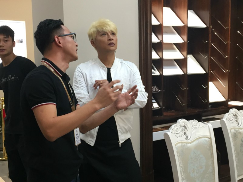 下午2點,本次活動的特邀嘉賓陳志朋終于在萬眾期待下空降武漢主場!作為“特派宣傳視察員”,志朋先是在今頂工作人員的陪同下參觀了今頂展廳。面對布置精美,款式獨特的各種展覽產(chǎn)品,他表現(xiàn)出了極大的興趣,特地要求今頂工作人員為其做專業(yè)講解,了解之后更是對今頂高品質(zhì)的產(chǎn)品與服務(wù)表示高度的欣賞與認可。
