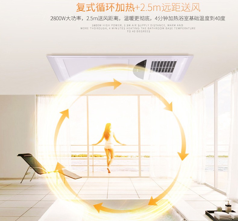 2800W大功率,2.5m送風(fēng)距離,4分鐘即可加熱浴室基礎(chǔ)溫度到40度,溫暖瞬達(dá),不懼寒冬。