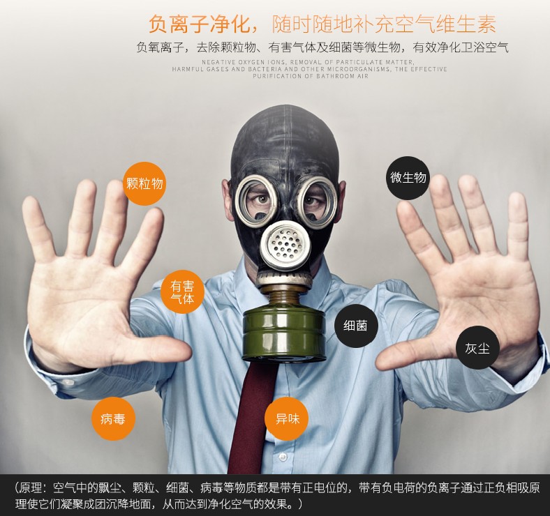 負(fù)離子凈化,去除顆粒物、有害氣體及細(xì)菌等微生物,有效凈化衛(wèi)浴空氣,隨時(shí)隨地補(bǔ)充空氣維生素。