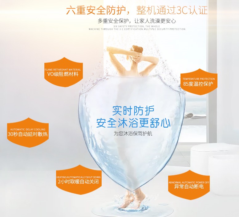 暖尊7擁有VO級(jí)阻燃材料、30秒自動(dòng)延時(shí)散熱、2小時(shí)取暖自動(dòng)關(guān)閉、異常自動(dòng)斷電等多重安全防護(hù),整機(jī)通過3C認(rèn)證,沐浴更安心。