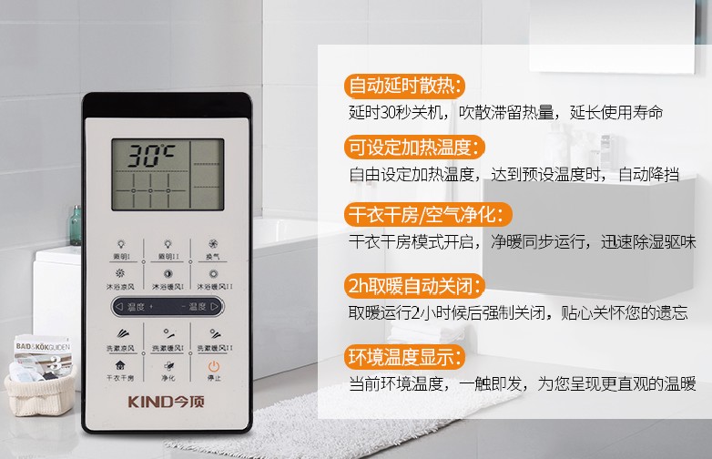 暖尊7主打跨區(qū)域取暖,一鍵切換干濕區(qū)取暖,可滿足干濕分區(qū)浴室所有電氣、冷暖、凈化等需求,功能齊全,四季皆宜。