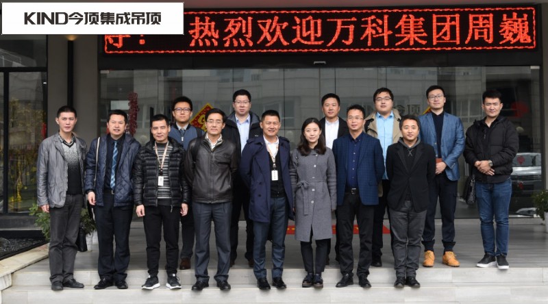 ?2017年11月20日,萬科集團副總裁周巍攜多名高管赴浙江今頂集成吊頂有限公司進行參觀考察,今頂集成吊頂董事長周建成對此表示熱烈歡迎。