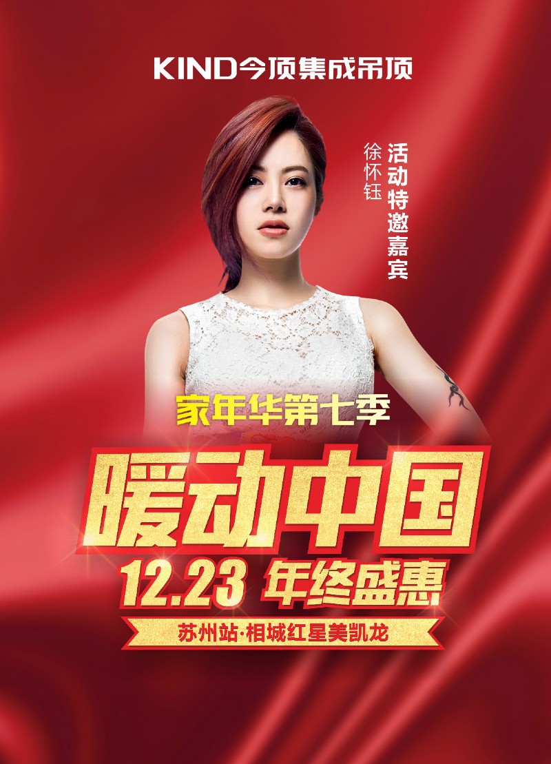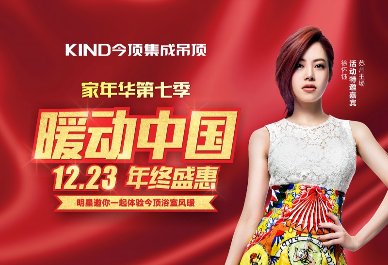 為了滿足大家的年終需要,今頂集成吊頂不僅適時推出了最新款“雙PTC發(fā)熱體,制暖效果一個頂倆”的浴室取暖神器“浴室風(fēng)暖”,更將于12月23日,舉辦“暖動中國”今頂家年華全國大促第七季,并力邀華語流行樂著名歌手,魅力女神徐懷鈺,傾情助陣蘇州主場!