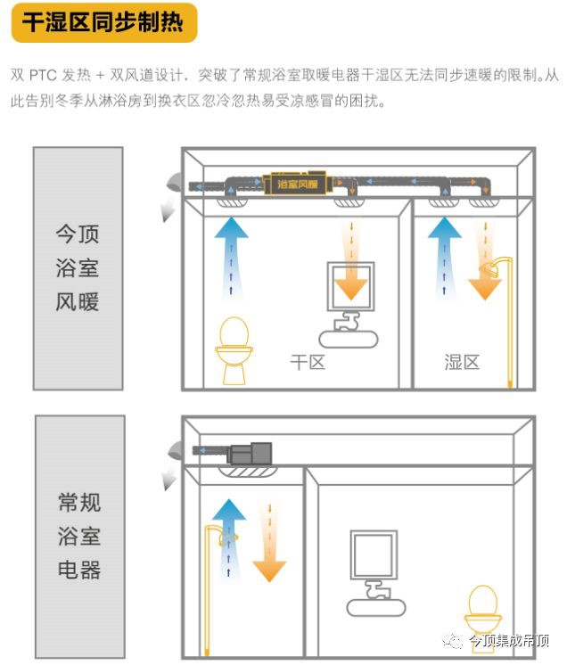 今頂浴室風(fēng)暖,創(chuàng)新雙PTC發(fā)熱+雙風(fēng)道設(shè)計,干濕雙區(qū)同步制暖,避免了洗澡前后大溫差帶來的不適感,不用再擔(dān)心冬季洗澡受涼感冒,洗漱換衣時也能慢下來享受自在愜意。
