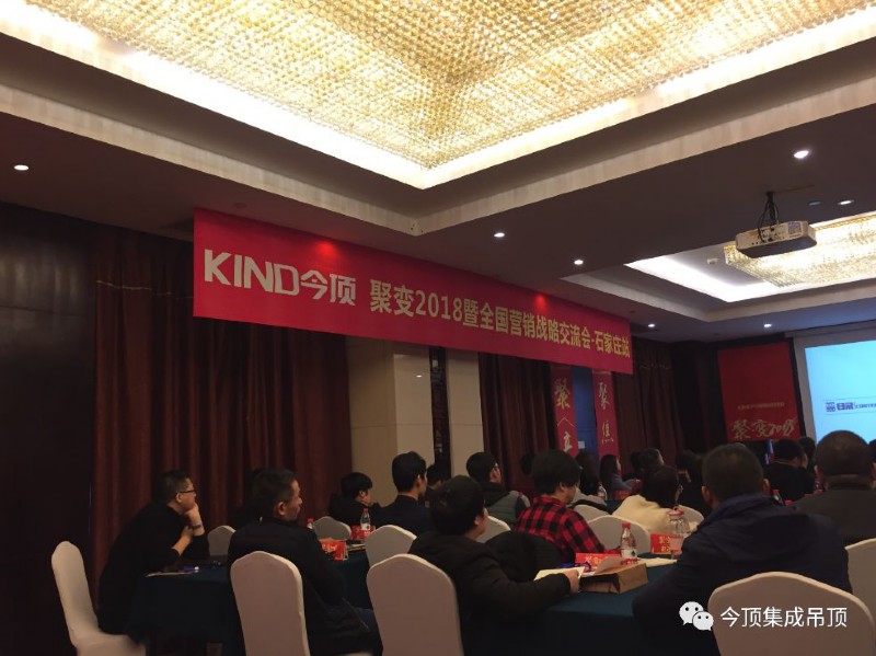 2018年1月22日—23日,今頂在石家莊京州國際酒店勝利進行了第一場“聚·變2018”全國營銷戰(zhàn)略交流會,今頂?shù)臓I銷精英們匯集一堂,總結(jié)2017年的市場營銷工作,分析建材家居市場變化及集成吊頂行業(yè)市場形勢,規(guī)劃并部署來年的工作。